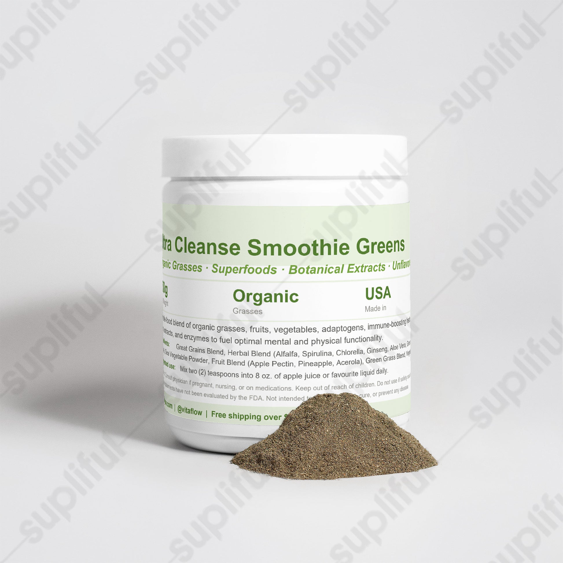 Ultra Cleanse Smoothie Greens is a blend of organic grasses, superfoods, and botanical extracts designed to fuel the body with broad-spectrum nutrients for optimal mental and physical functionality.